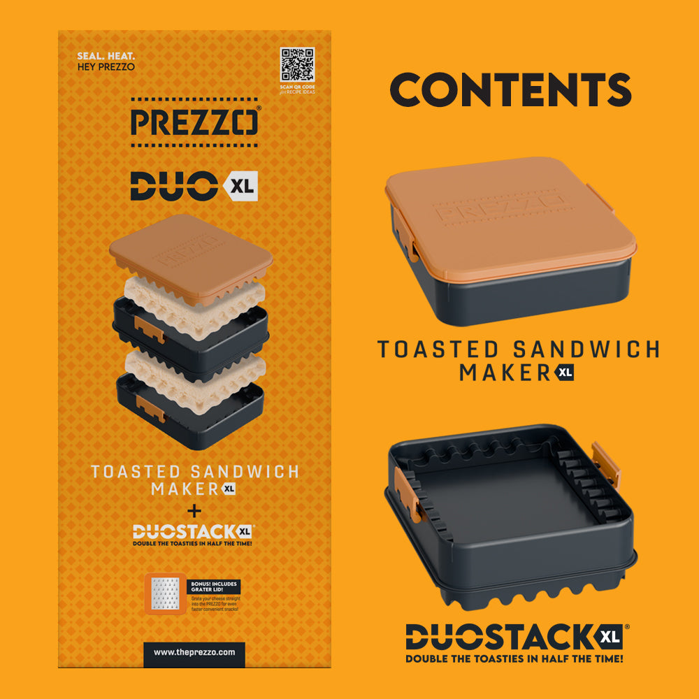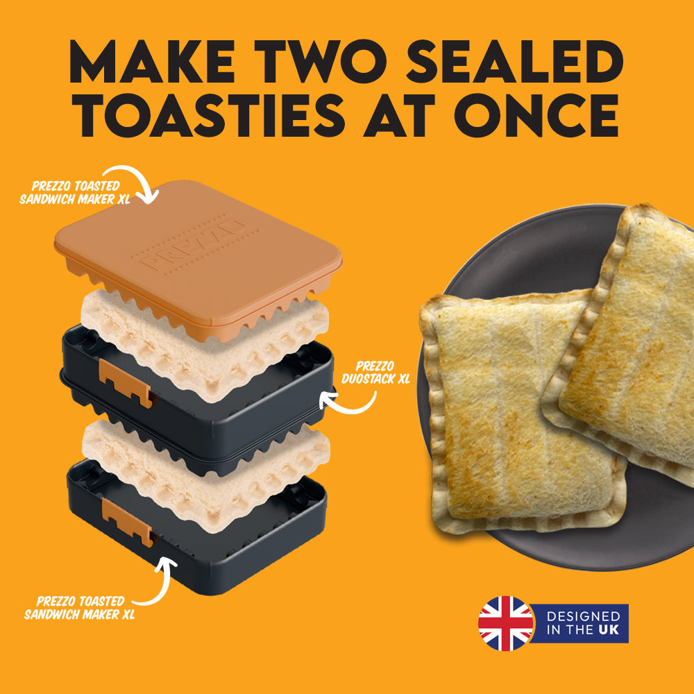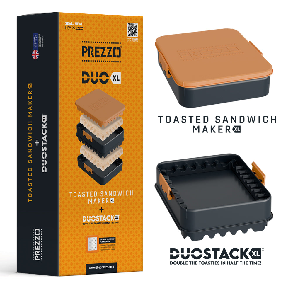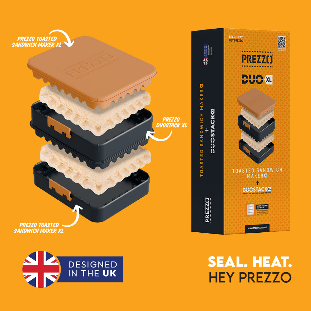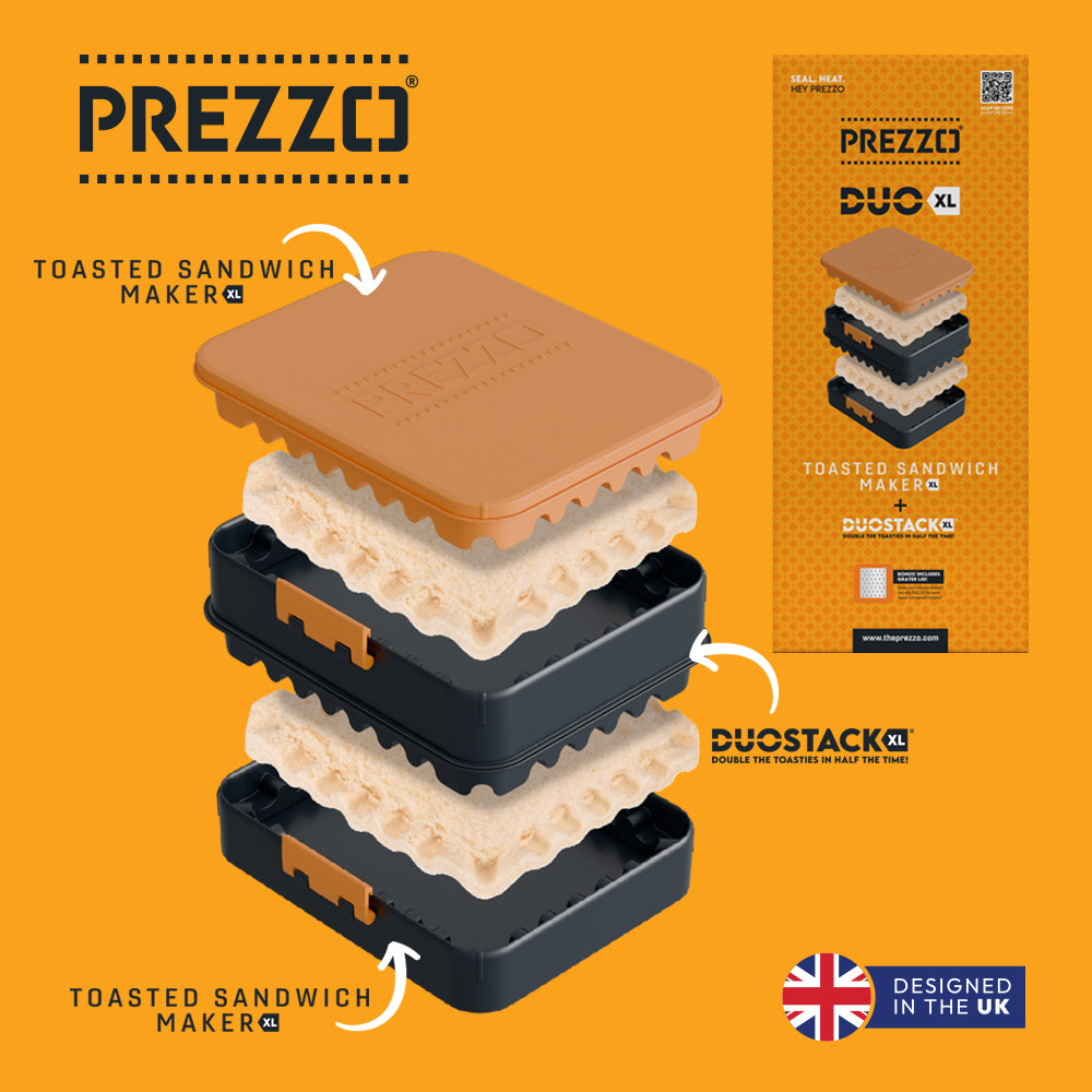 Place a slice of normal or thins bread in the base, Add your fillings, Place another piece of bread on top and press down Prezzo to create seal. Pop the sandwich parcel into the toaster, air fryer or under the grill and enjoy! (Note: if using normal bread Prezzo will remove the crusts)