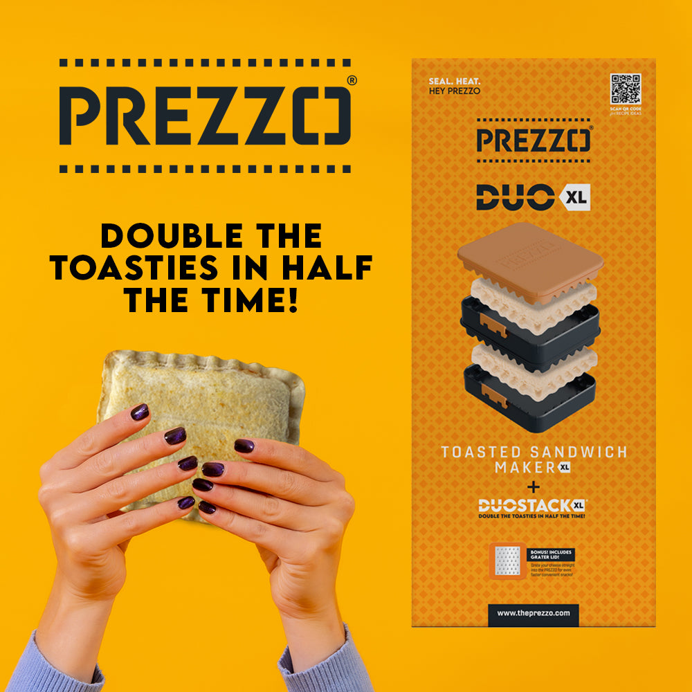 PREZZO’s unique patented design allows you to make your favourite toasted snacks from thins, standard bread & even wraps!